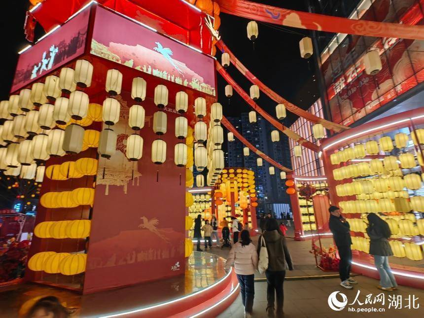 武汉新春庙会上的红灯笼引得市民打卡。人民网记者 郭婷婷摄