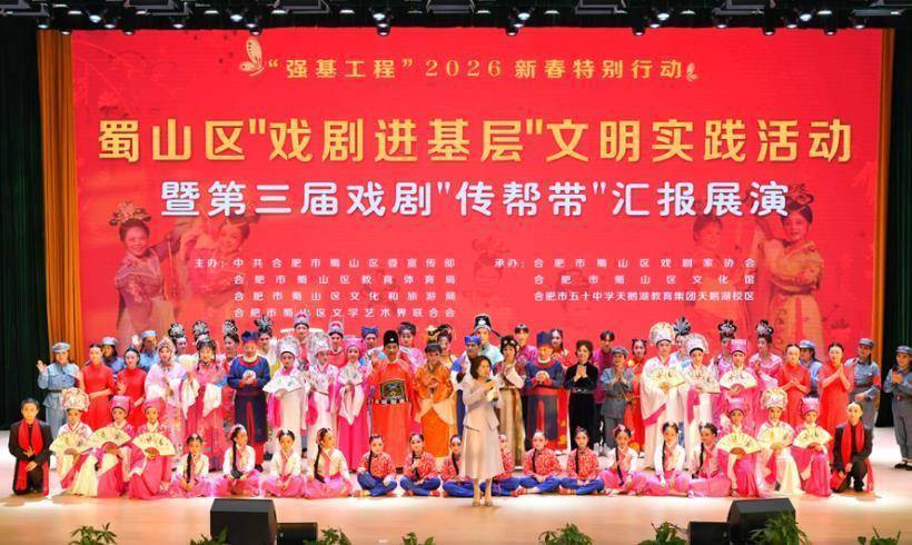 戏曲的群众基础,在蜀山这片沃土中不断扎根、延展。特别是近年来,依托“戏曲进社区、进校园”等系列常态化活动,引导戏曲艺术融入群众的日常生活;发挥艺术精品在戏曲文化普及工作中带来的流量作用,《岁岁杜鹃红》《蝶恋花——骄杨》等一批原创戏曲作品深受群众喜爱。同时,坚持把人才作为戏曲普及的活态载体,通过举办戏曲演唱大赛、公益培训等形式,让越来越多的“门外客”转变为“戏中人”。(卫波 朱欢喜 陈三虎 孙雨静 文/图)